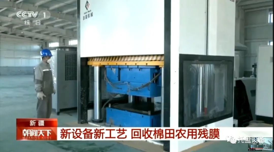 “现在每5分钟就可以生产出1片托盘,每片市场价格150元左右。该生产线是新疆首条无水化残膜综合利用生产线可年处理回收50余万亩农田的地膜,年产托盘10万片,年节水量10000立方米。中国农业科学院棉花研究所成果转化处副处长王文魁说。